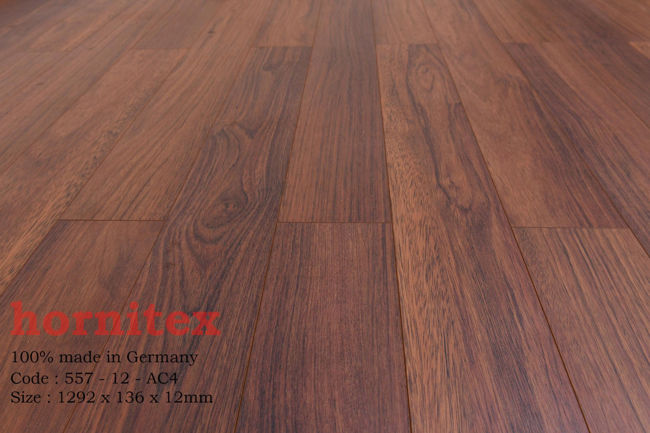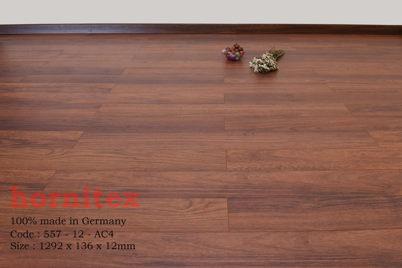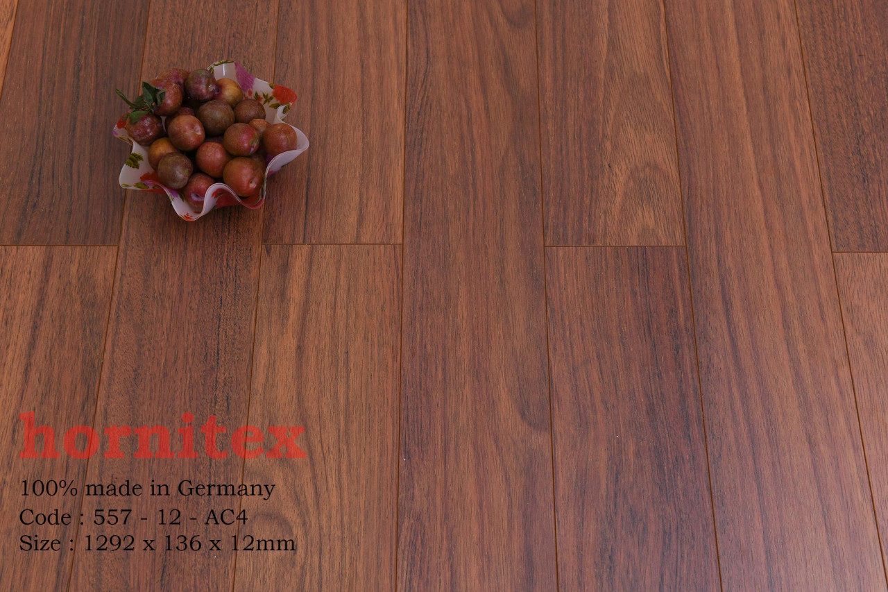 Sàn gỗ Hornitex 557-12 là dòng sàn gỗ công nghiệp cao cấp được nhập khẩu trực tiếp từ CHLB Đức. Với công nghệ hèm khóa 2G Valinge giúp các tấm ván sàn được liên kết chặt chẽ lại với nhau. Cùng với lõi gỗ HDF được ép dưới lực ép lên đến 950kg/m3. Nhờ đó sàn gỗ Hornitex có khả năng chịu nước rất tốt, thách thức mọi điều kiện thời tiết. Bề mặt vân gỗ sần màu gỗ Óc Chó tự nhiên đem lại cảm giác gần gũi với thiên nhiên, mát mẽ vào mùa hè và ấm áp vào mùa đông. Làm tăng thêm sự sang trọng cho căn phòng và thể hiện đẳng cấp của gia chủ. Bên cạnh đó là bề mặt sàn Hornitex 557-12 có hệ số chống mài mòn là AC4 nên có thể chống trầy xước mài mòn rất tốt.
