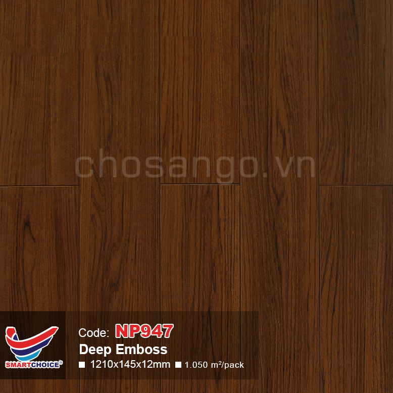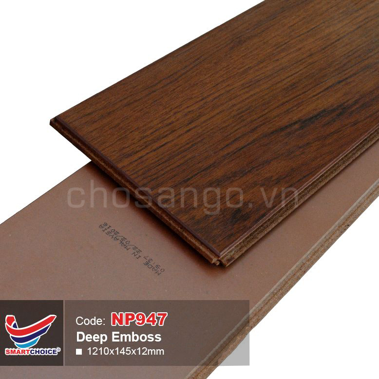 Sàn gỗ SmartChoice NP947 là mẫu sàn gỗ công nghiệp cao cấp được nhập khẩu trực tiếp từ Malaysia. Ván sàn có kích thước 1210 x 145 mm, độ dày 12 mm và cốt gỗ HDF siêu chịu nước, không bị ẩm mốc. Giúp cho ván sàn SmartChoice trở nên chắc chắn hơn, có thể ngâm hàng giờ liền trong nước mà không sợ bị hư hỏng. Với hệ số mài mòn AC4 chống mài mòn, trầy xước, mài mòn rất tốt. Nhờ công nghệ hèm khóa trên ván sàn giúp cho việc thi công trở nên đơn giản, nhanh chóng hơn.