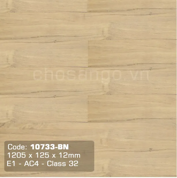 Sàn gỗ Thaixin 10733-BN mẫu sàn gỗ công nghiệp cao cấp được nhập khẩu trực tiếp từ Thái Lan. Được sản xuất bởi nhà máy Vanachai là nhà máy sản xuất sàn gỗ hàng đầu Thái Lan. Với cốt gỗ HDF màu nâu đặc trưng của dòng sản phẩm này, có khả năng chống chịu nước rất tốt, không bị mối mọt, ẩm mốc. Tấm ván sàn Thaixin 10733-BN có chiều dài 1205 mm, chiều rộng 125 mm và độ dày 12 mm